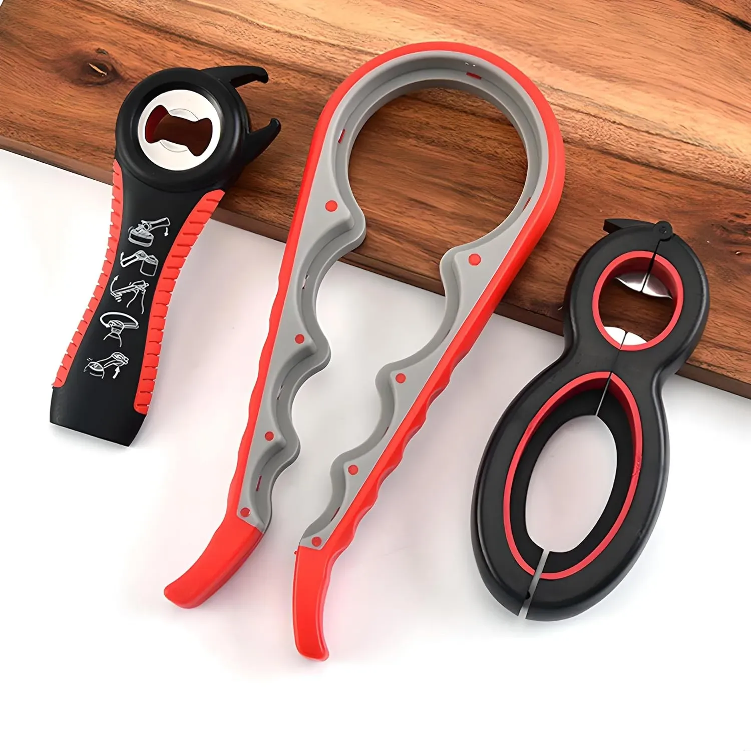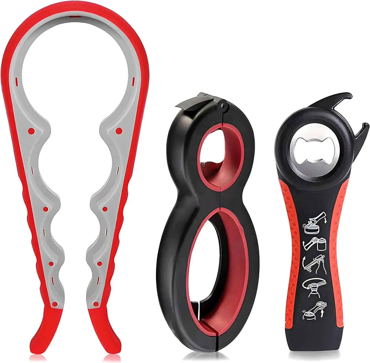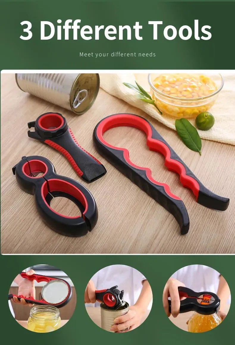 Juego de 3 piezas que incluye abridor de botellas de frasco, abridor de latas y un abridor de tapas de rosca para una amplia variedad de envases