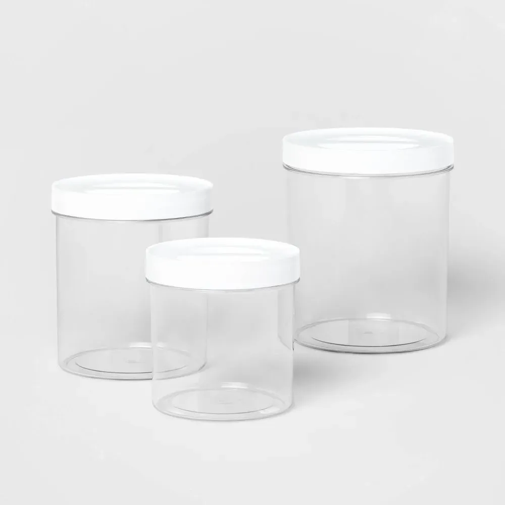 Mantenga su despensa organizada y sus alimentos frescos con el juego de recipientes herméticos redondos de 3 piezas de Brightroom