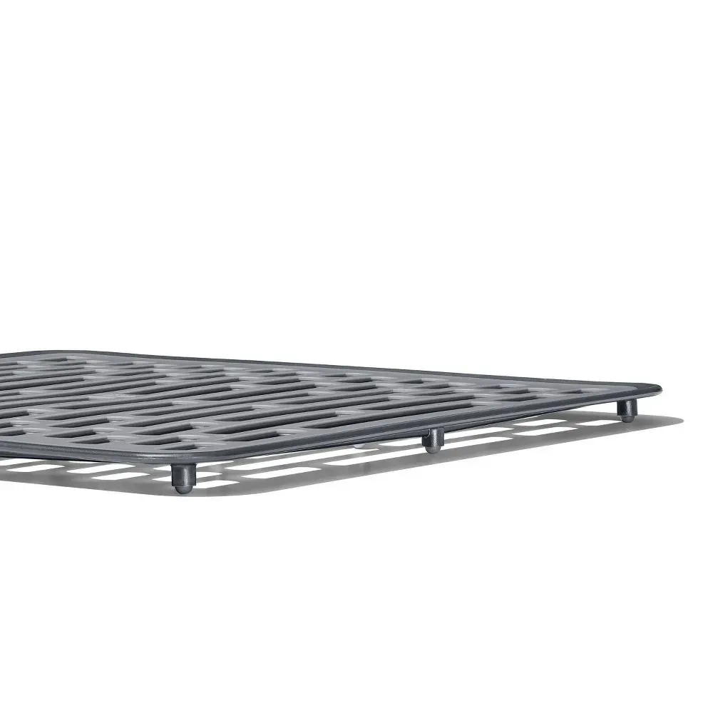 La estructura robusta y elevada permite un amplio flujo de aire y agua, y las patas antideslizantes mantienen el tapete elevado para un secado rápido