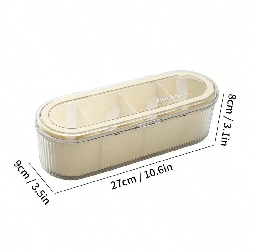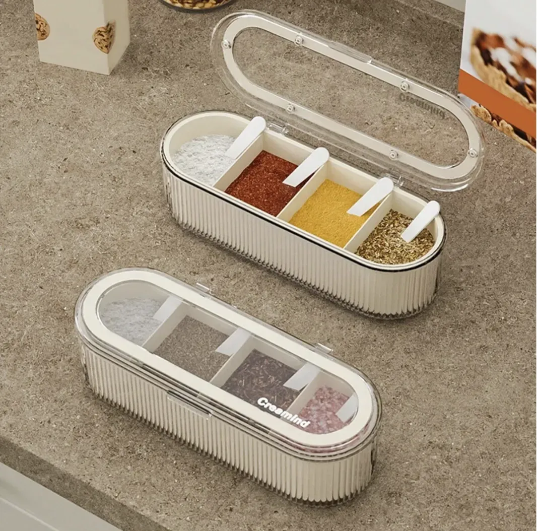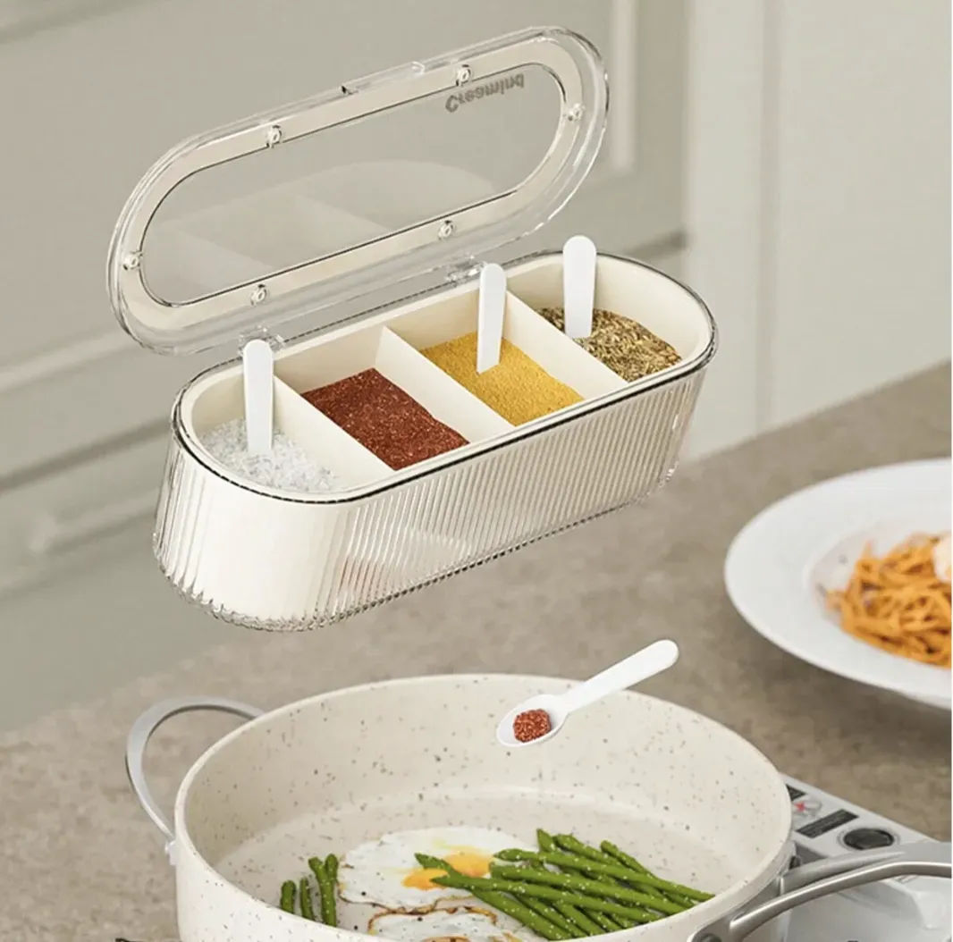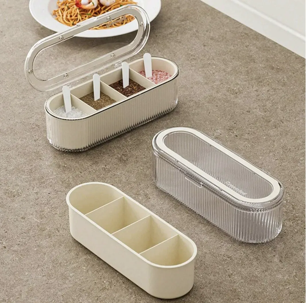 La caja multifuncional con 4 compartimentos te va a permitir guardar tus condimentos favoritos