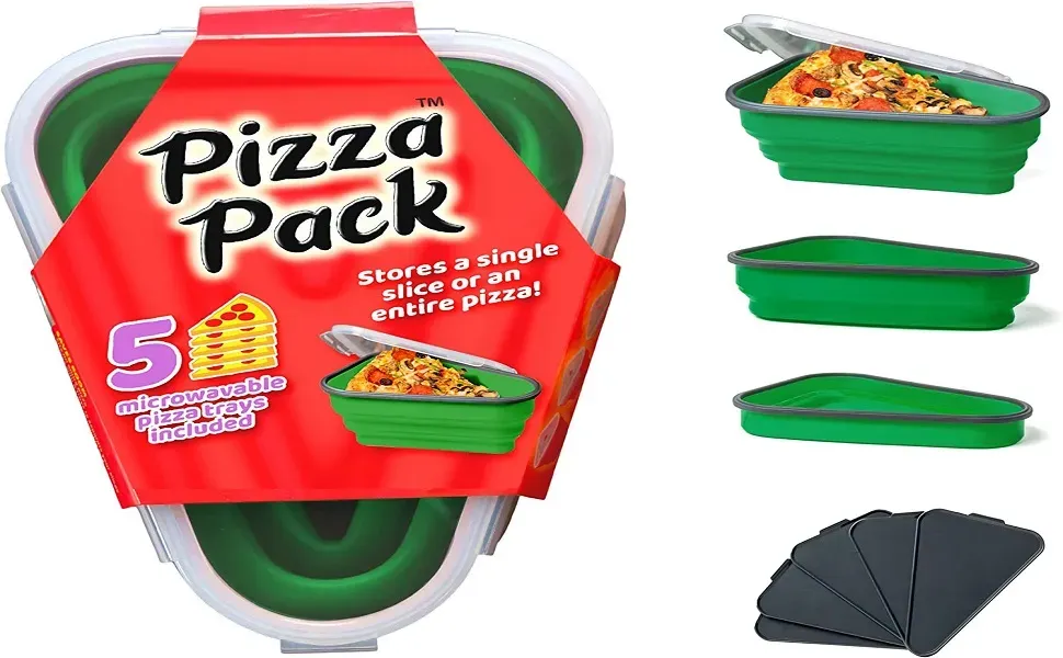 Cada bandeja para pizza se pliega y se expande. Ideal para almacenar restos de pizza sin que la caja de pizza ocupe todo el estante